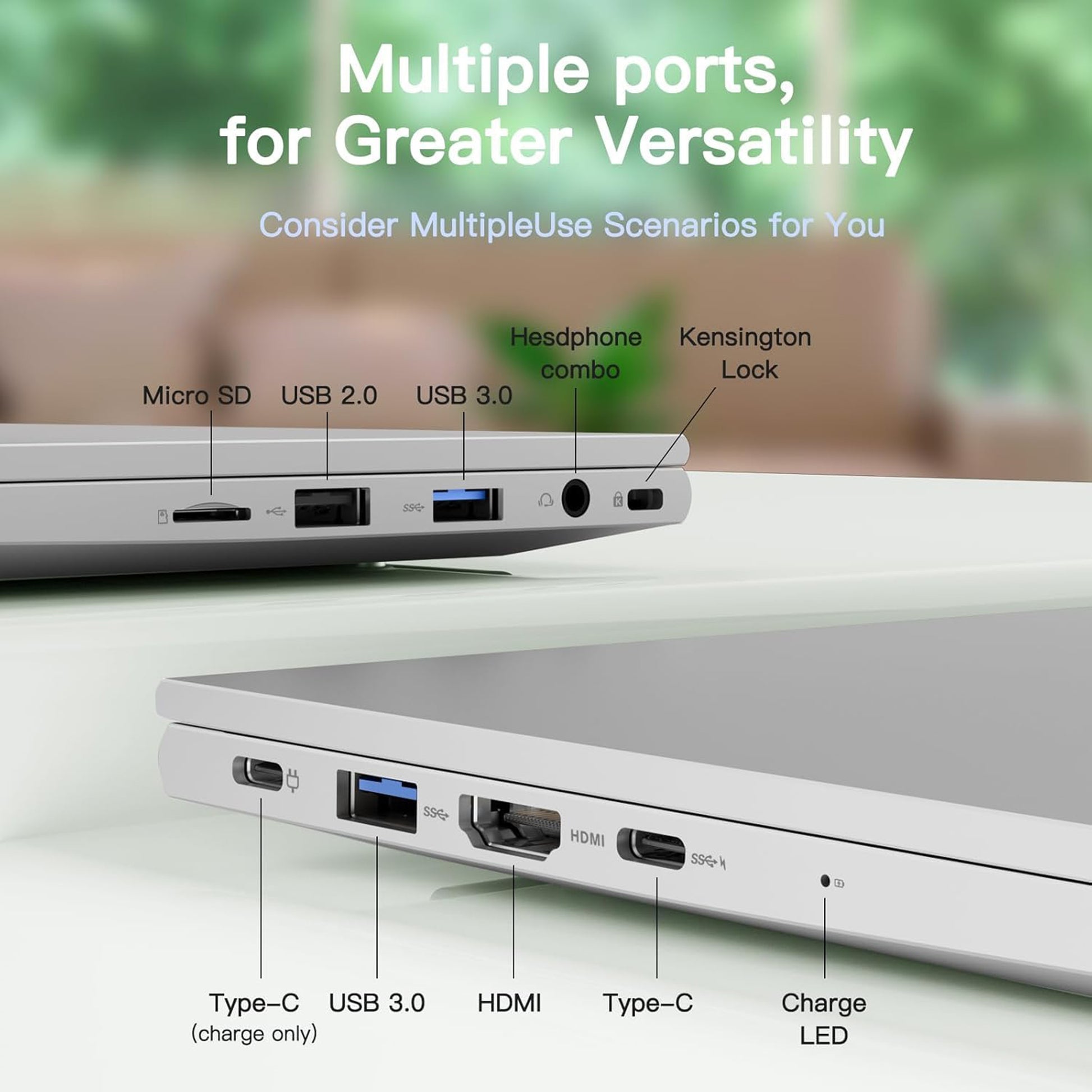 - 【Type-C 65W PD Fast Charger】Our laptops come with a 6.56ft USB-C to USB-C fast charging cable and a Type-C 65W PD fast charger, which allows for quicker charging and makes your travels more convenient. Our charger can not only power laptops but also charge your iPad, phone, camera, and other devices, helping you say goodbye to charging anxiety. With this charger, you have everything you need.